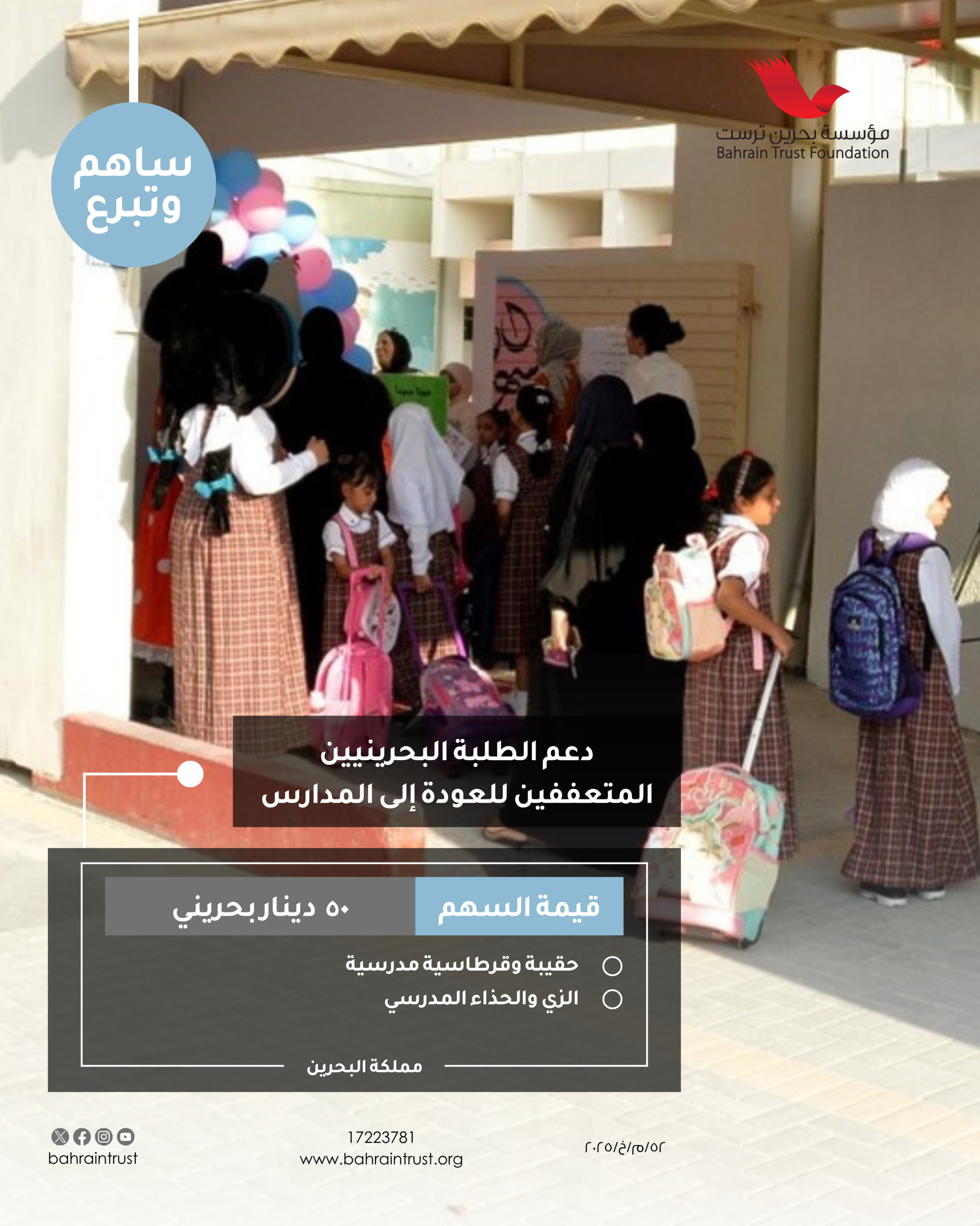 • دعم الطلبة البحرينيين المتعففين للعودة إلى المدارس